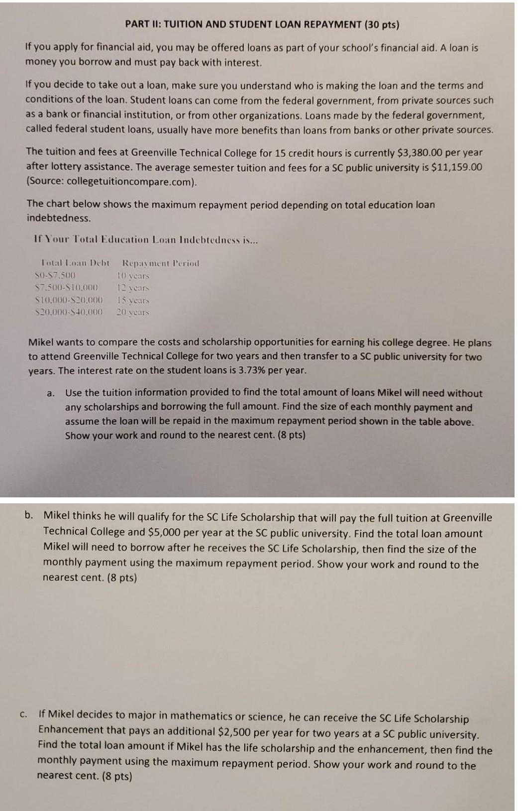 Solved Part Ii Tuition And Student Loan Repayment 30 Pts Chegg Com